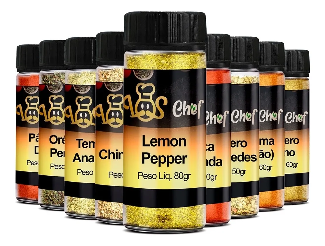 Este kit permite experimentar uma ampla variedade de temperos, do tradicional ao exótico, ideal para carnes, legumes, feijão, molhos, massas e muito mais.